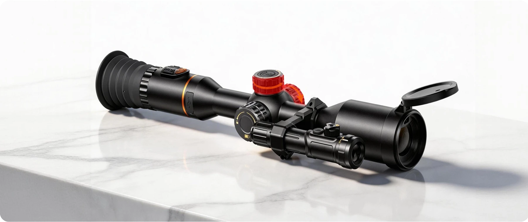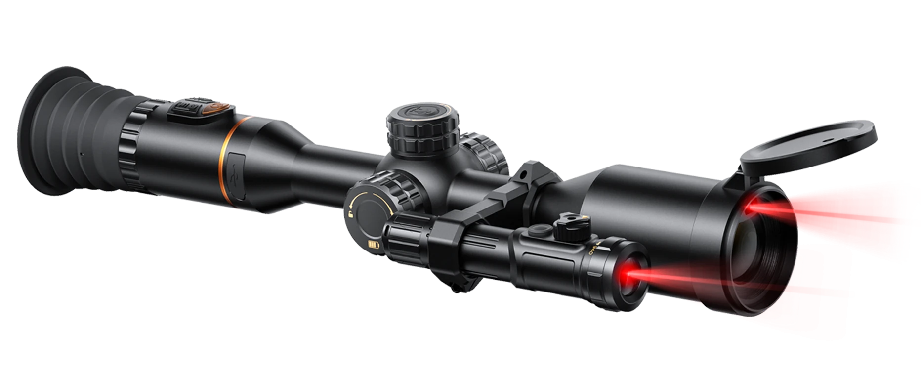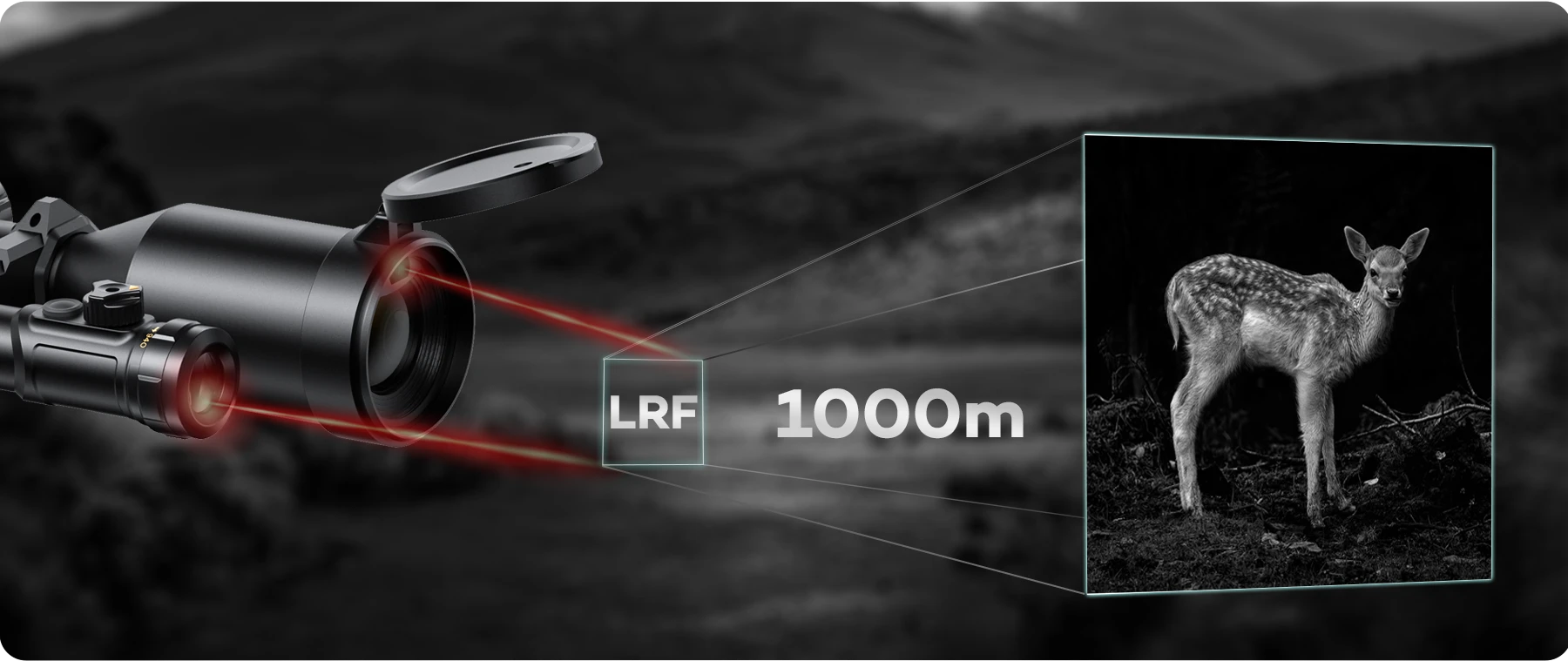 Features a built-in high-precision Laser Rangefinder (LRF) fully integrated with the objective lens.