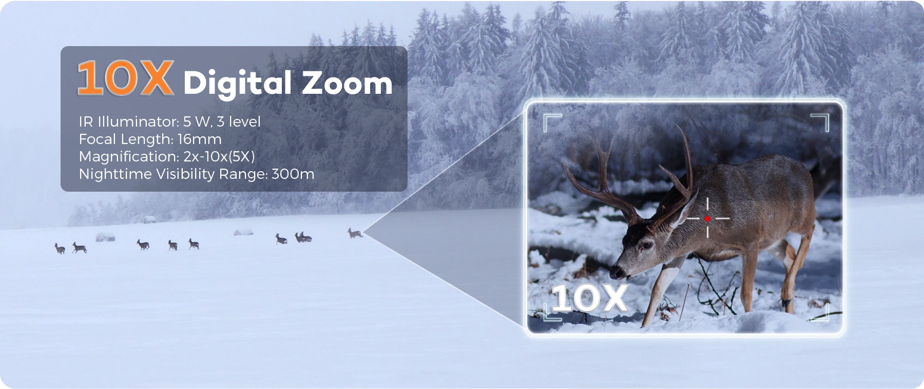 With a magnification of up to 10x, it shows excellent target detection and recognition capabilities in hunting games.