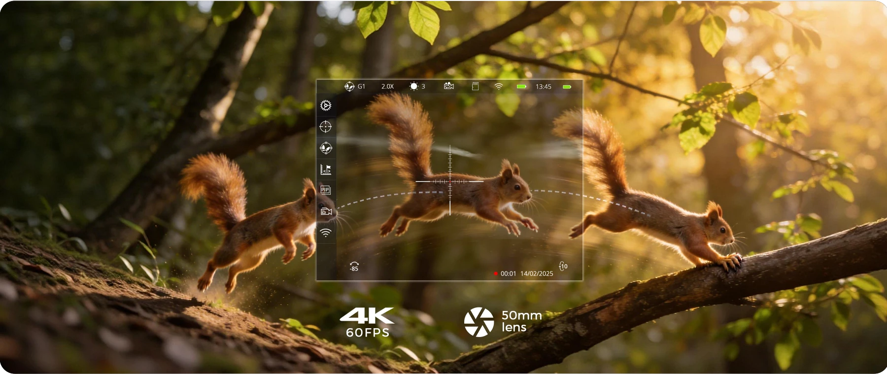 The 50mm lens and 4K sensor (3840x2160) capture exceptional detail, while the 60fps processing ensures smooth, real-time tracking of high-speed movement.