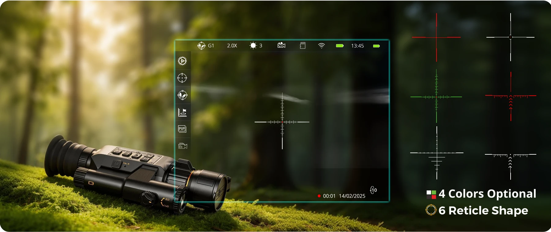 The NV500-4K features 6 reticle shapes and 4 display colors. Tailor your aiming point to any environment and target through the menu, for a truly personalized shooting experience.
