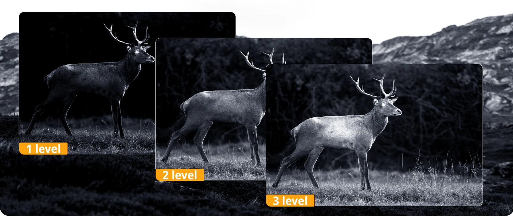 3 levels of brightness. In a completely dark environment, the farthest observation distance can reach 300 meters.
