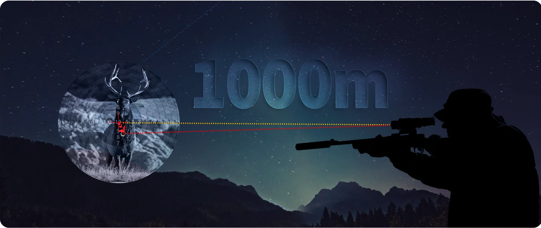 Integrates the laser ranging finder to accurately grasp the target distance while observing or shooting and the ranging distance can reach 1000m.